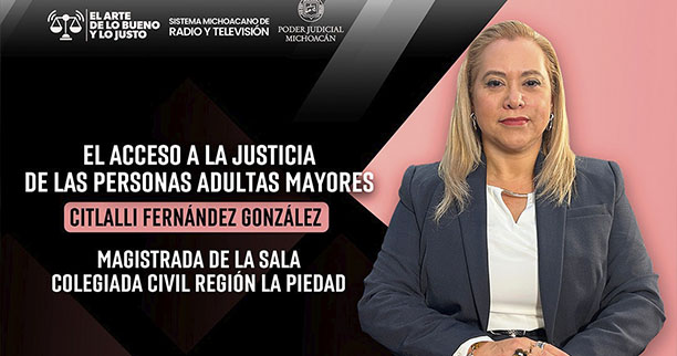 Morelia, Michoacán, 20 de abril de 2026. – Con el objetivo de visibilizar la importancia de garantizar el acceso efectivo a la justicia para las personas adultas mayores, la magistrada Citlalli Fernández González, integrante de la Sala Colegiada Civil de la Región La Piedad, participó en el programa El Arte de lo Bueno y lo Justo, donde abordó los principales retos, avances y consideraciones en la atención de este sector de la población.
